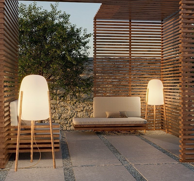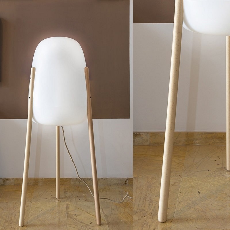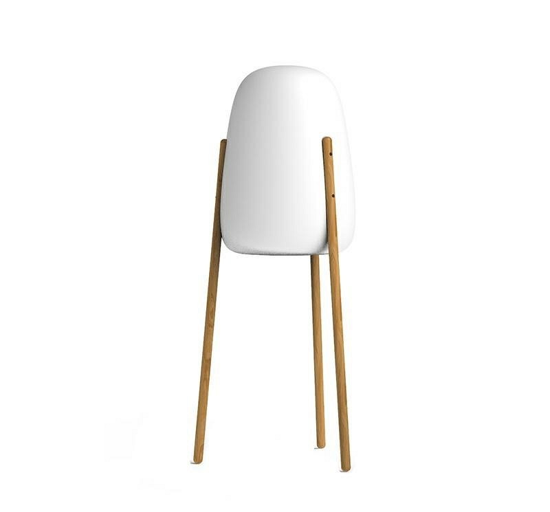 Lampa ogrodowa w kształcie rakiety. Oryginalna lampa dekoracyjna z drewnianymi nogami do wnętrz i na zewnątrz. Połączenie drewna i dopasowującego się do warunków zewnętrznych polietylenu sprawia, że produkt ten jest bardzo praktyczny i uniwersalny. Wersja In & Out zawiera pilota do włączania/wyłączania światła, ściemniania i zmiany temperatury barwowej.