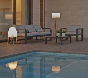 NOWA lampa podłogowa GARDEN CHLOE. Chloe to oryginalna lampa podłogowa z drewnianymi nogami, idealna do dekoracji przestrzeni zarówno wewnątrz, jak i na zewnątrz. Połączenie drewna i dopasowującego się do warunków zewnętrznych polietylenu sprawia, że produkt ten jest bardzo praktyczny i uniwersalny.