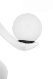 - Okrągłe klosze z mlecznego szkła, umieszczone w dłoni i u podstawy, równomiernie rozpraszają światło, tworząc przytulną atmosferę.