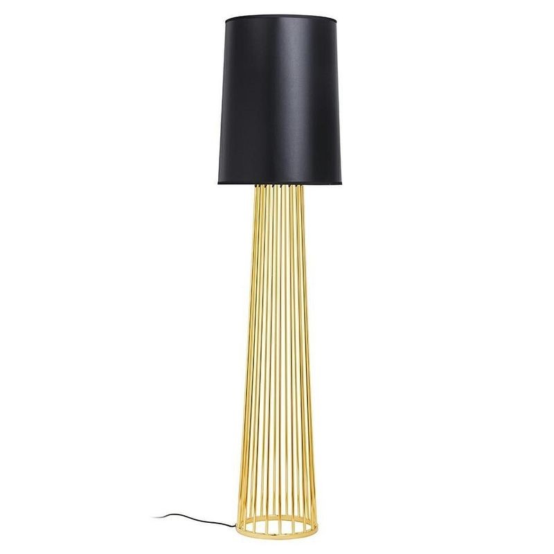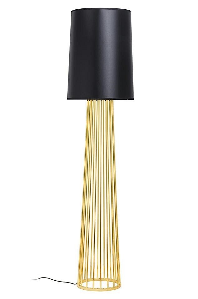 Lampa podłogowa Holmes Straight to propozycja dla osób ceniących elegancki wygląd w klasycznej formie. Lampa wykonana ze stali węglowej w kolorze złotym, błyszczącym. Czarny cylindryczny klosz wykonany został z płótna satynowego, usztywniony laminatem i wykończony lamówką. Wymiar klosza: średnica 36 - 38 cm, wysokość 52 cm Źródło światła (niedołączone): 1xE27 max 60 W Maksymalna ilość szt. w opakowaniu: 1 Sposób wysyłki: Paleta Produkt do samodzielnego złożenia: Tak