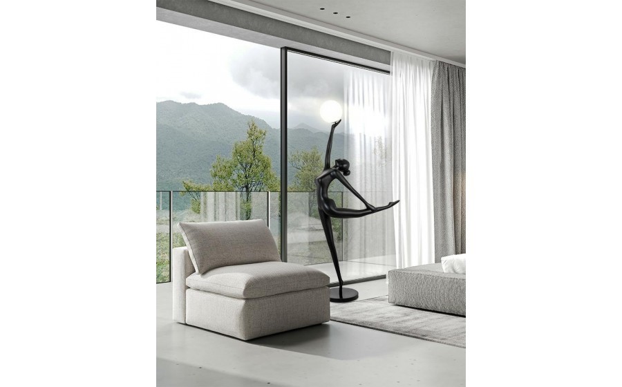Lampa podłogowa HUMAN BALLERINA to niezwykłe połączenie sztuki, designu i funkcjonalności, stworzone z myślą o tworzeniu unikalnej atmosfery w każdej przestrzeni. Ta wyjątkowa lampa podłogowa jest nie tylko źródłem światła, ale również fascynującym elementem dekoracyjnym, który przykuwa uwagę i emanuje nowoczesnym urokiem. Głównym materiałem używanym przy tworzeniu HUMAN BALLERINA jest lekkie i wytrzymałe włókno szklane, co nadaje lampie subtelny wygląd i elegancki charakter. Stylowa metalowa konstrukcja podtrzymuje szklany klosz w nietypowym motywie kobiecej sylwetki w pozycji tanecznej. Ta nietuzinkowa interpretacja lampy sprawia, że HUMAN BALLERINA staje się nie tylko oświetleniem, ale również formą sztuki, która wzbogaca każdą przestrzeń. Solidna marmurowa podstawa nie tylko zapewnia stabilność lampie, ale także dodaje elementu luksusu i ekskluzywności. Figura tańczącej baleriny, utrzymującej klosz, dodaje lampie unikalnego charakteru, tworząc dynamiczną i nowoczesną dekorację.