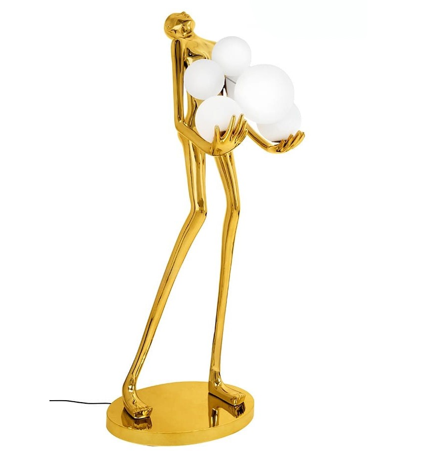Lampa HUMAN GOLD łączy w sobie funkcjonalność z niezwykłą estetyką. Sylwetka człowieka, która stanowi podstawę lampy, jest nie tylko oryginalnym elementem dekoracyjnym, ale także symbolizuje siłę i stabilność. Stworzony balans kolorystyczny – połączenie złota z bielą szkła – idealnie współgra z nowoczesnymi jak i klasycznymi wnętrzami, dodając im elegancji i stylu.
