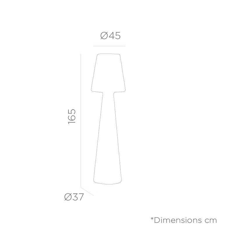 Lampa ogrodowa Lola 165 C firmy Newgarden. New Garden to hiszpańska marka specjalizująca się w unikalnych meblach ogrodowych i lampach. Cały korpus wykonany jest z białego polietylenu odpornego na wysokie temperatury i promienie UV. Lampa stanie się praktycznym i dekoracyjnym elementem Twojego ogrodu lub tarasu.