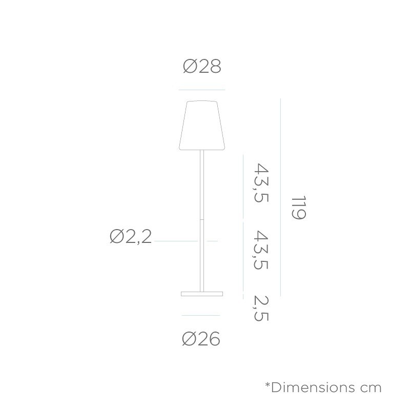 Lampa podłogowa NEW GARDEN LOLA SLIM. Połączenie smukłej i eleganckiej metalowej podstawy z w pełni polietylenowym kloszem sprawia, że jest to jedna z najlepszych lamp zewnętrznych w rodzinie Lola.