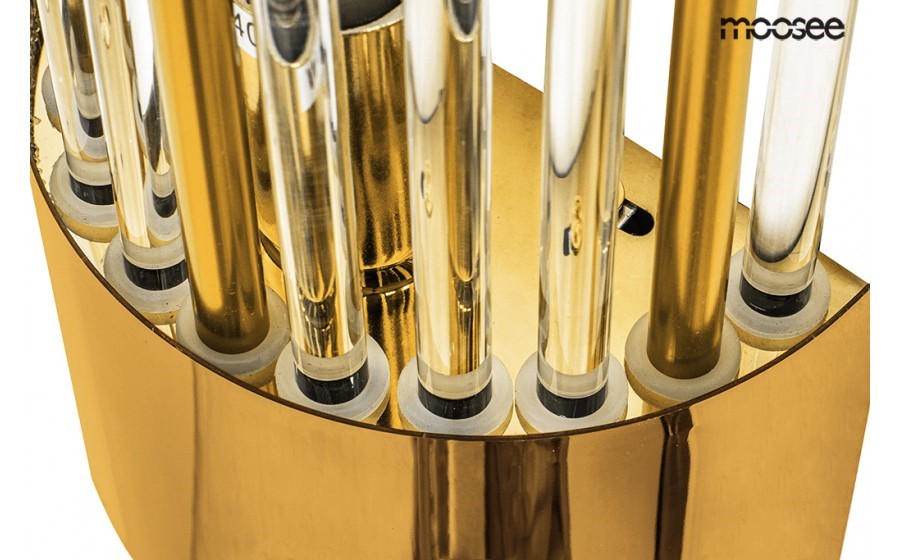 Lampa ścienna AMANDA to niezwykłe połączenie nowoczesności, elegancji i efektownego oświetlenia, które stanie się nie tylko praktycznym źródłem światła, lecz także centralnym punktem dekoracyjnym w Twoim wnętrzu. Oprawa ścienna tej lampy została wykonana z połączenia szklanych kloszy i stali, co nadaje jej nowoczesny i stylowy charakter. Oświetlenie jest skierowane zarówno w górę, jak i w dół, co sprawia, że pomieszczenie jest równomiernie rozświetlone, a jednocześnie uzyskujemy subtelne, ambientowe światło. Niezwykły efekt wizualny lampy AMANDA pochodzi z transparentnych kloszy, przez które przebija się snop światła. Złoto-pomarańczowe rurki dodają lampie niezwykłego uroku, zatrzymując i filtrując światło w sposób unikalny i atrakcyjny. To nie tylko oświetlenie, ale także dzieło sztuki, które przyciąga wzrok i nadaje wnętrzu wyjątkowego charakteru. Lampa ścienna AMANDA złota nie tylko wypełni pomieszczenie pięknym światłem, ale również stanie się dominującym elementem dekoracyjnym.