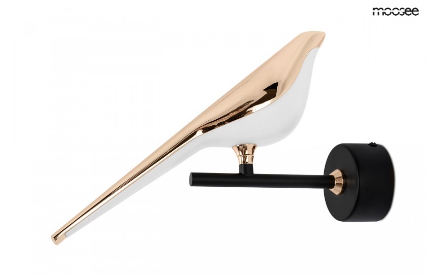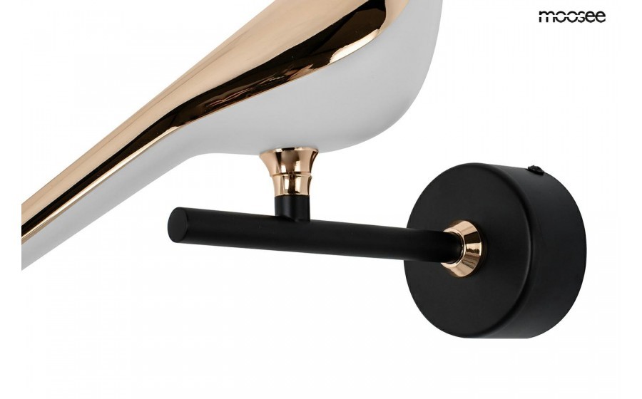 Lampa ścienna BIRD w kolorze złotym to niezwykłe połączenie nowoczesnego designu z delikatnym, naturalnym motywem. Centralnym elementem lampy jest biało-złoty ptaszek, który został umocowany na czarnym stelażu przypominającym gałąź. Ten dodatek nadaje oświetleniu nie tylko unikalny wygląd, ale także naturalny, lekki charakter. Stelaż jest zaprojektowany w sposób, który umożliwia montaż lampy zarówno w prawo, jak i lewostronnym kierunku, co pozwala dostosować ją do indywidualnych preferencji. Lampa z kolekcji Bird nie tylko oświetla przestrzeń, ale również staje się jej ozdobnym elementem. Możliwość tworzenia spójnych aranżacji z innymi elementami tej kolekcji sprawia, że można nadać wnętrzu spersonalizowanego i eleganckiego charakteru.