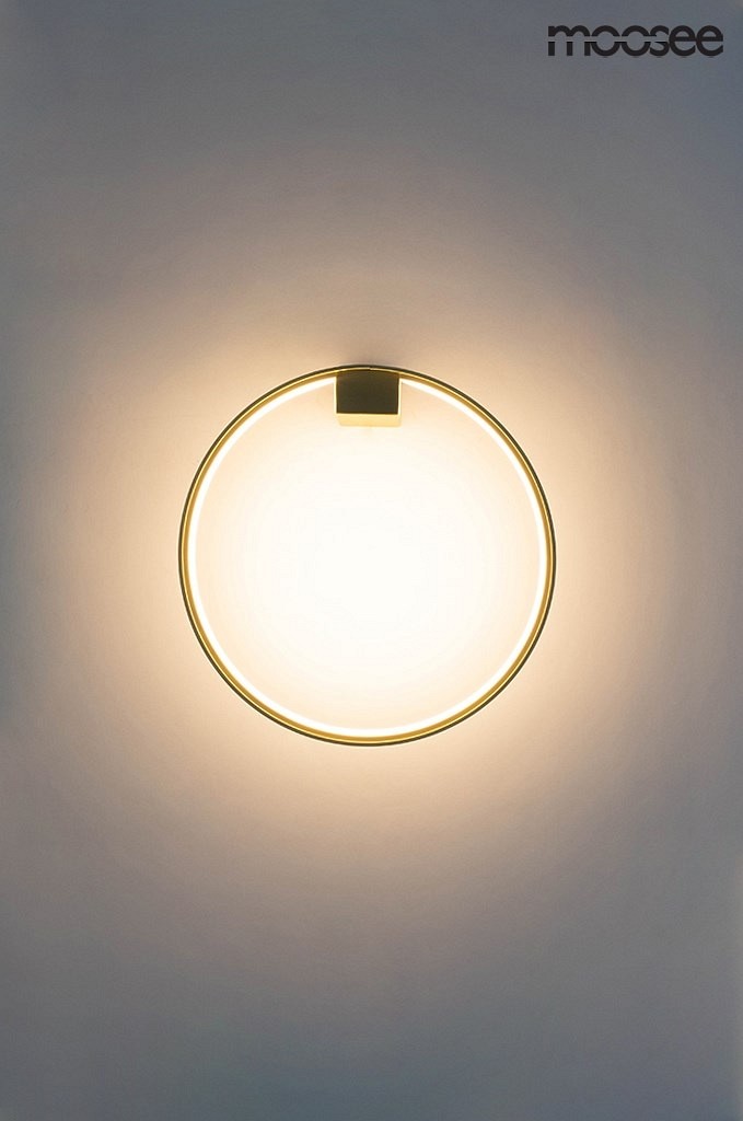 Lampa ścienna MOOSEE CIRCLE WALL złota. okrągły kinkiet. Wykonany w całości z aluminium ze złotym wykończeniem. Klosz pod akrylową osłoną skrywa źródło światła LED. Harmonijne aranżacje są możliwe dzięki serii Circle Light.