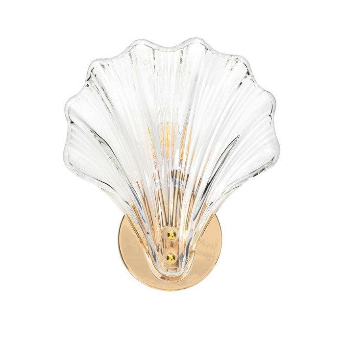 Lampa ścienna CONCHA to nie tylko oświetlenie, ale również wyjątkowa ozdoba, która nadaje wnętrzu niepowtarzalny charakter. Jej designerski kształt nawiązujący do muszli sprawia, że jest to niezwykle atrakcyjny element dekoracyjny, który z pewnością przyciągnie wzrok każdego miłośnika nietuzinkowego designu. Transparentny klosz, starannie wykonany z dbałością o najmniejsze detale, pozwala światłu przenikać z łagodnością i delikatnością. Efekt ten tworzy niezwykle piękny obraz na ścianie, dodając subtelności i przytulności pomieszczeniu. Montaż wykonany ze stali i wykończony eleganckim złotym kolorem dodaje lampie szlachetności oraz luksusowego charakteru. Kombinacja transparentności klosza i złotego mocowania sprawia, że lampa idealnie wpisuje się w trendy nowoczesnego designu, jednocześnie nawiązując do inspiracji naturą - morską muszlą.