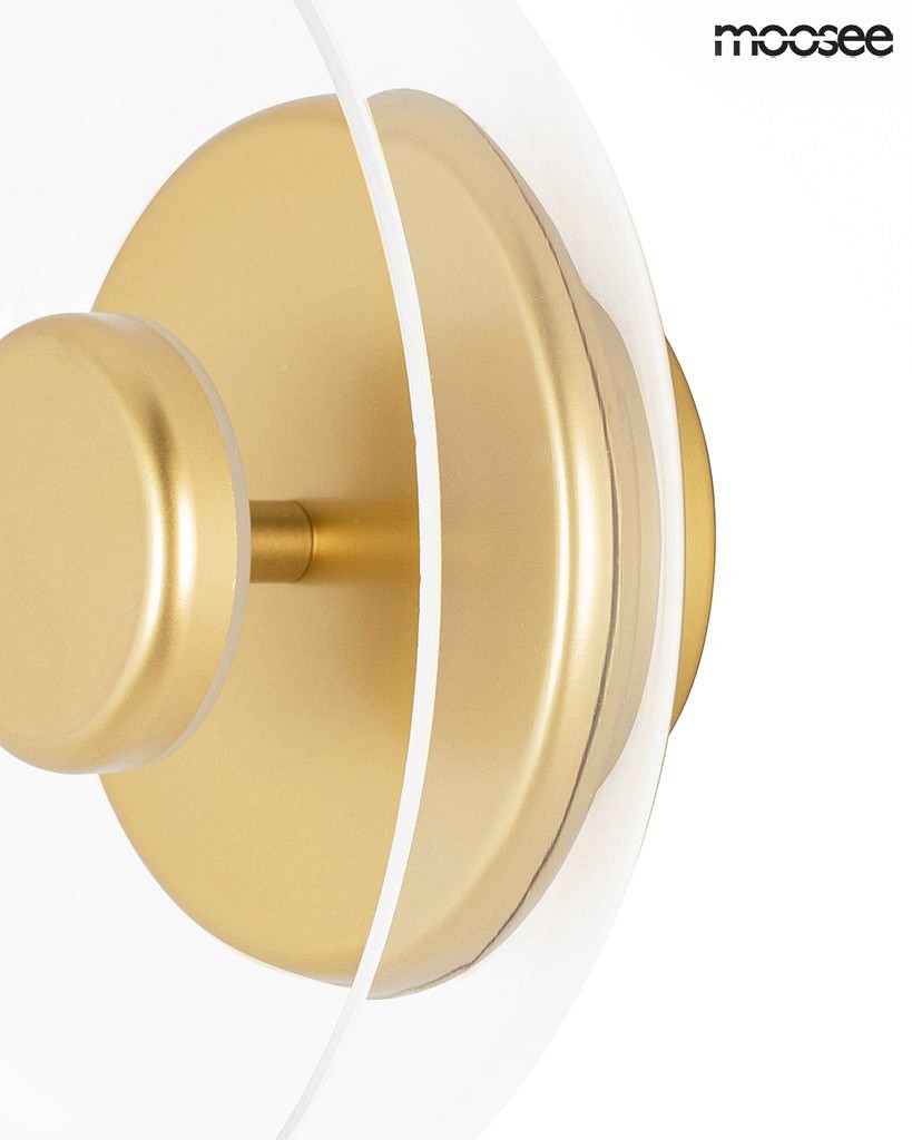 Kinkiet MOOSEE EDEN WALL złoty. Dzięki stylowemu szklanemu kloszowi i metalowemu wspornikowi w kolorze złotym ta lampa idealnie nadaje się do nowoczesnych wnętrz, ale można ją też nieco bardziej surowo zaakcentować, tworząc ciekawą przerwę. Kierując źródło światła do wewnątrz, wiązka światła z uchwytu zostaje odbita, tworząc niepowtarzalny efekt.