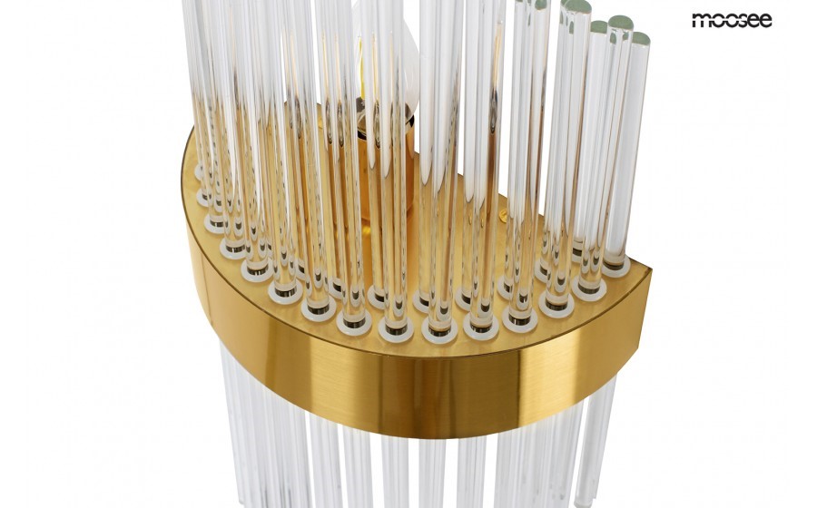 Lampa ścienna FLORENS S to znakomite połączenie elegancji, luksusu i nowoczesnego designu. Ta niezwykle wytworna oprawa oświetleniowa zachwyca przede wszystkim szklanymi kloszami, które stanowią główny element lampy. Szklane klosze nadają lampie niepowtarzalnego uroku, łapiąc i rozpraszając światło w wyjątkowy sposób. Ich subtelny blask tworzy atmosferę luksusu i klasy, doskonale komponując się z metalowym łącznikiem umieszczonym centralnie na lampie. Metalowa konstrukcja w kolorze złotym nie tylko pełni funkcję nośną, ale również staje się dodatkową dekoracją, podkreślając ekskluzywność całej lampy.