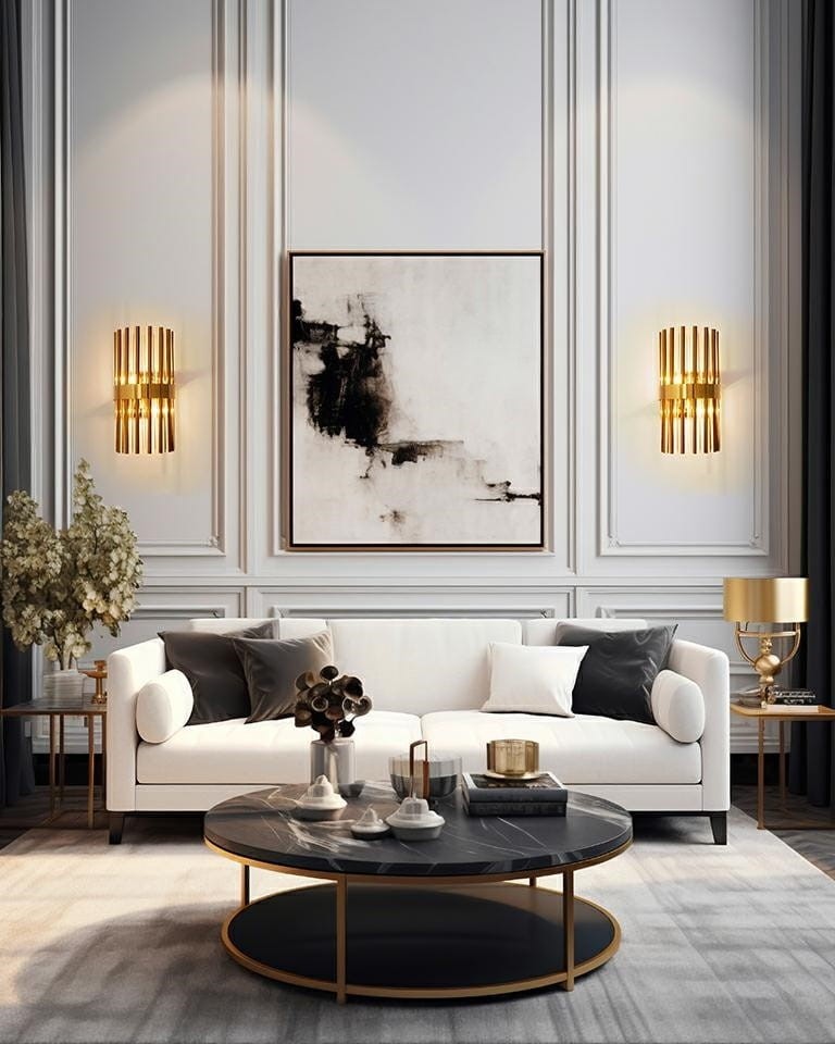 Lampa GARDA bez wątpienia wzbogaci każde pomieszczenie, stanowiąc doskonałe uzupełnienie wnętrz urządzonych w stylu Glamour. Jej złoty kolor oraz błyszczące kryształowe klosze sprawią, że każde wnętrze zyska na blasku i wyrafinowaniu. Ta lampa to nie tylko funkcjonalne źródło światła, ale również dzieło sztuki, które przyciąga wzrok i zachwyca detalem.