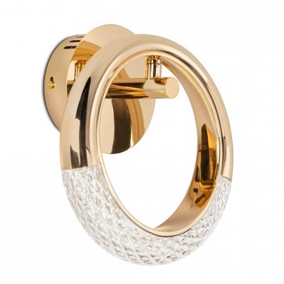Lampa ścienna HELIOS to wyjątkowe oświetlenie, które przypomina elegancką kołatkę. Jej oprawa z aluminium w złotym odcieniu w połączeniu z dekoracyjnymi kryształkami tworzy efektowny design. Wyjątkowy akcent klosza, który błyszczy, doskonale rozprasza padający strumień światła, nadając prostocie formy designerski i luksusowy charakter. Lampa HELIOS łączy w sobie elegancję i nowoczesność, tworząc subtelny, a jednocześnie efektowny element dekoracyjny. To niezwykłe oświetlenie świetnie odnajdzie się w nowoczesnych wnętrzach utrzymanych w stylu glamour.