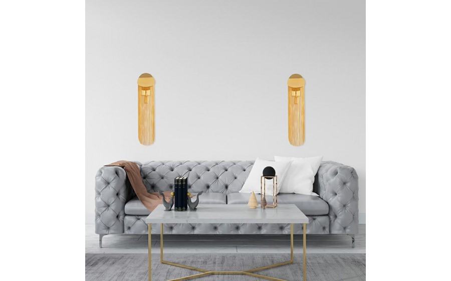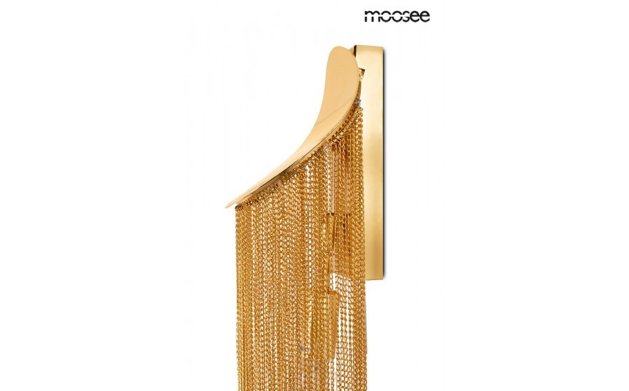 Lampa ścienna LAMBADA o wyjątkowa propozycja dla miłośników oryginalnego i nowoczesnego oświetlenia. Jej oprawa wykonana z metalu w złotym kolorze nadaje pomieszczeniu niepowtarzalny charakter, dodając mu elegancji i stylu. Centralnym elementem lampy LAMBADA są delikatne łańcuszki, które tworzą klosz, nadając mu subtelnego uroku i lekkości. To nietuzinkowe rozwiązanie aranżacyjne sprawia, że lampa ścienna staje się nie tylko funkcjonalnym źródłem światła, ale również wyrazem sztuki designerskiej. Złoty kolor oprawy doskonale komponuje się z różnymi stylami wnętrz, dodając im nuty luksusu i współczesności.