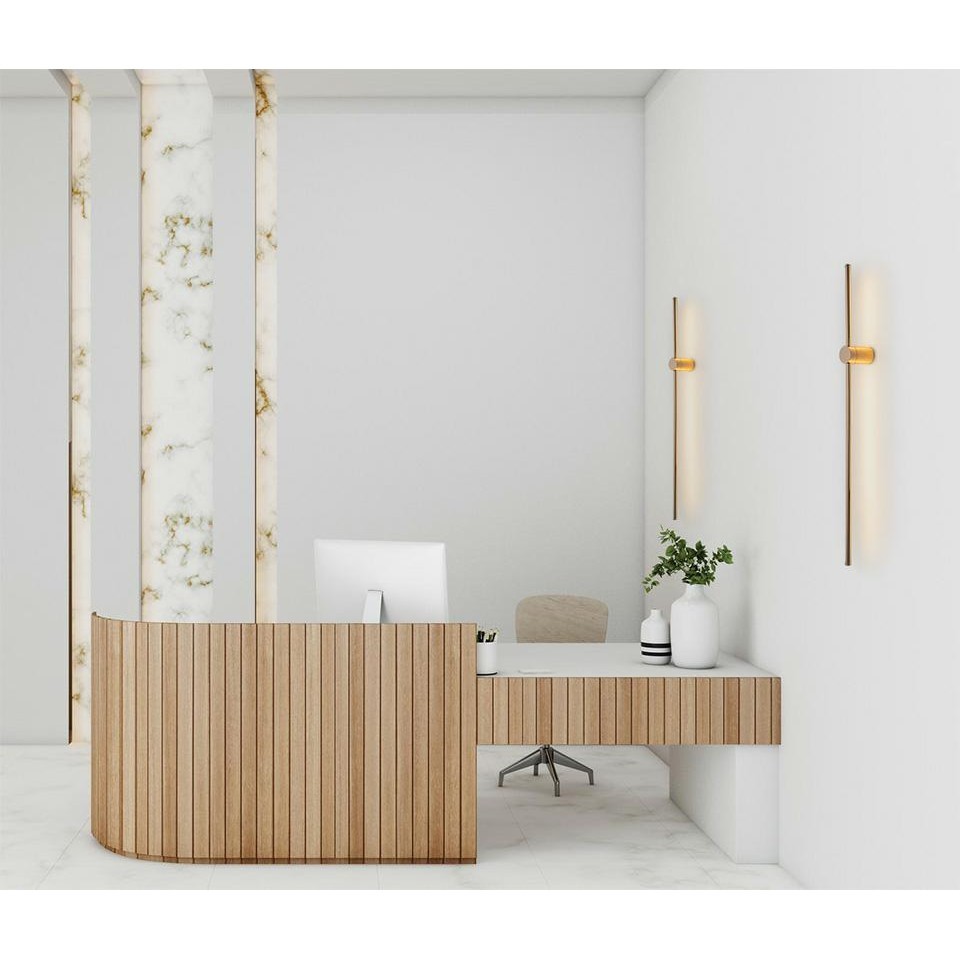 Lampa ścienna OMBRE to połączenie nowoczesnego designu i funkcjonalności. Całkowicie wykonana ze stali w eleganckim złotym kolorze, ta minimalistyczna lampa zachwyca prostotą formy, będąc jednocześnie wyrazistym elementem aranżacyjnym. Głównym elementem lampy jest podłużny, akrylowy klosz, który skrywa zaawansowane ledowe źródło światła. Dzięki temu lampa nie tylko emanuje równomiernym i przyjemnym światłem, ale również charakteryzuje się energooszczędnością oraz trwałością. Technologia LED pozwala na efektywne oświetlenie przestrzeni, jednocześnie dbając o ekologiczne aspekty. Lampa doskonale wpisuje się zarówno w nowoczesne, jak i industrialne wnętrza. Jej minimalistyczny kształt sprawia, że łatwo można ją dopasować do różnych stylów aranżacyjnych, tworząc harmonijną atmosferę w każdym pomieszczeniu.