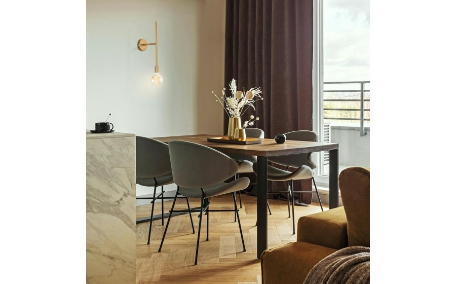Lampa ścienna RIVA to połączenie klasyki i funkcjonalności, które sprawi, że Twoje wnętrze nabierze niepowtarzalnego charakteru. Ta praktyczna oprawa doskonale komponuje się zarówno z klasycznymi, jak i nowoczesnymi aranżacjami, zapewniając elegancję oraz wyjątkowy styl. Klosz, wykonany z dymionego szkła, nadaje lampie industrialnego uroku, dodając jednocześnie nuty elegancji. Całość lampy RIVA została wykonana ze stali w eleganckiej złotej kolorystyce, co sprawia, że kinkiet emanuje subtelnym blaskiem i doskonale pasuje do różnorodnych aranżacji wnętrz. Złota kolorystyka dodaje pomieszczeniu ciepła i stylu, tworząc harmonijną atmosferę.