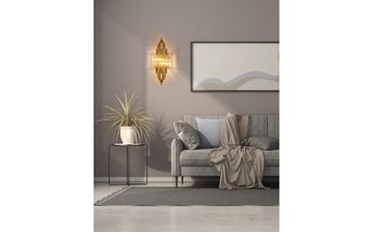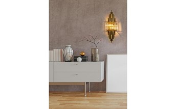 Lampa ścienna TOWERS to wyraziste połączenie elegancji i luksusu, które sprawia, że wnętrze nabiera wyjątkowego charakteru. Ta unikatowa lampa zdolna jest przekształcić każdą przestrzeń, łącząc w sobie metalową konstrukcję z delikatnością kryształów. Kryształy, umieszczone na metalowej podstawie, tworzą niezwykle efektowny element, który po zapaleniu lampy generuje fascynującą grę świateł. Ta unikalna kombinacja sprawia, że pomieszczenie nabiera atmosfery pałacowego glamour. Złoty kolor metalowej oprawy doskonale komponuje się z kryształami, tworząc eleganckie połączenie, które doskonale odnajdzie się w aranżacjach wnętrz glamour.