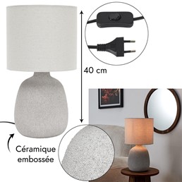 Lampa stołowa Amani to połączenie klasyki z nowoczesnością. Jej jasnoszara ceramiczna podstawa i delikatny abażur tworzą harmonijną całość, wprowadzając do wnętrza przytulną atmosferę.