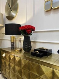 - Metalowa konstrukcja w połączeniu z eleganckim czarnym marmurem na podstawie tworzą wyjątkowy akcent o klasycznym wyglądzie.