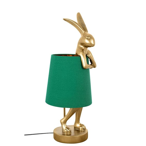 RABBIT to urocza lampa stołowa w unikalnym kształcie zawstydzonego królika, który zakrywa się lnianym kloszem. Złoty kolor nadaje lampie elegancji, zaś zieleń klosza podkreśla jego delikatność. Lampa RABBIT to nie tylko oświetlenie, ale również element dekoracyjny, który doda uroku każdemu pomieszczeniu.