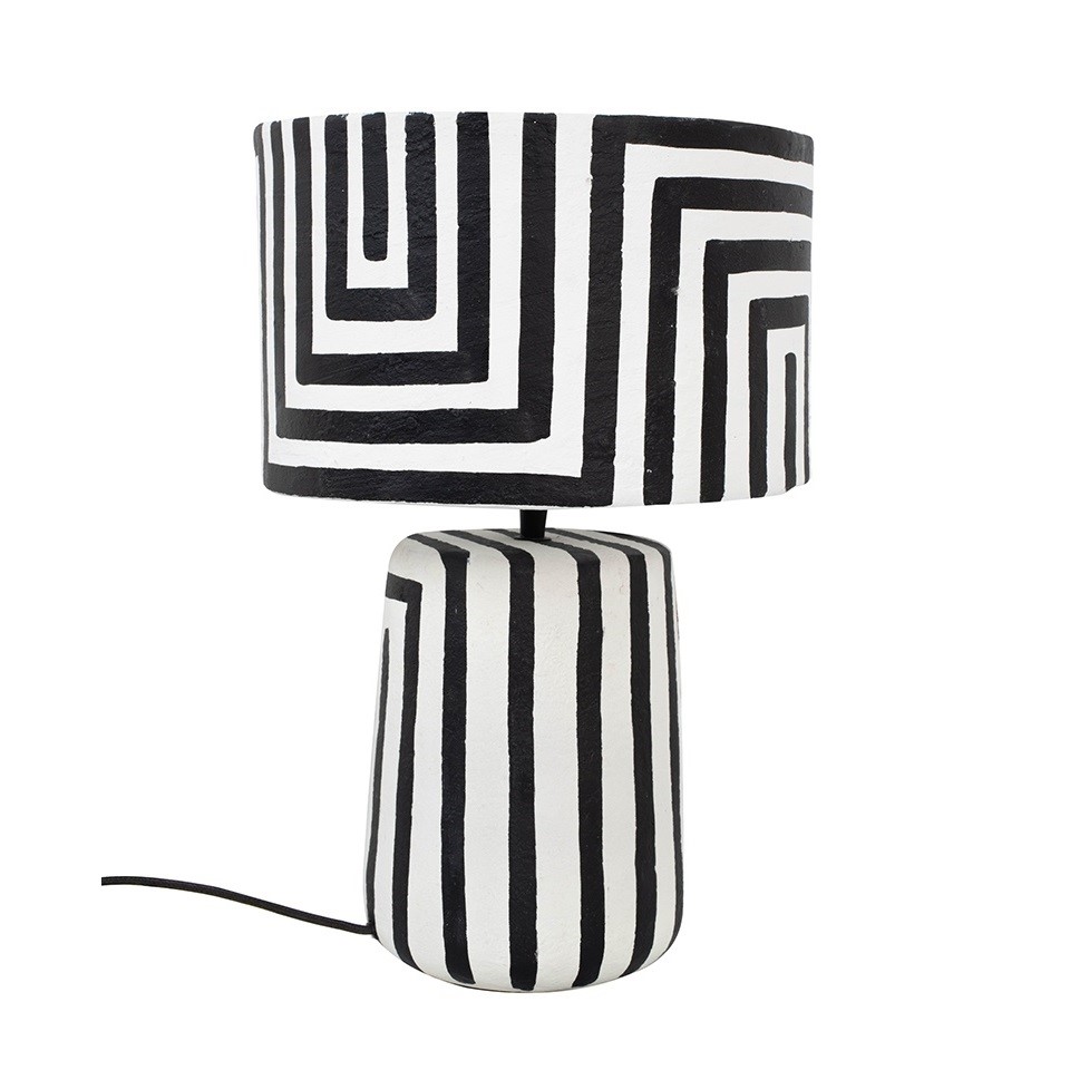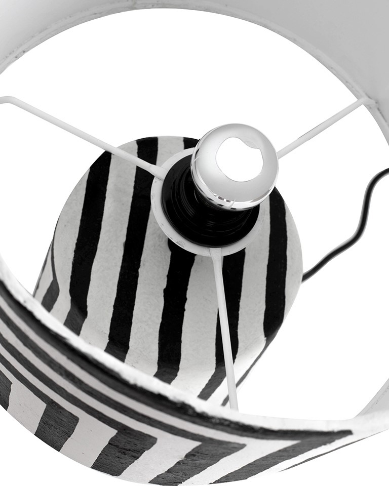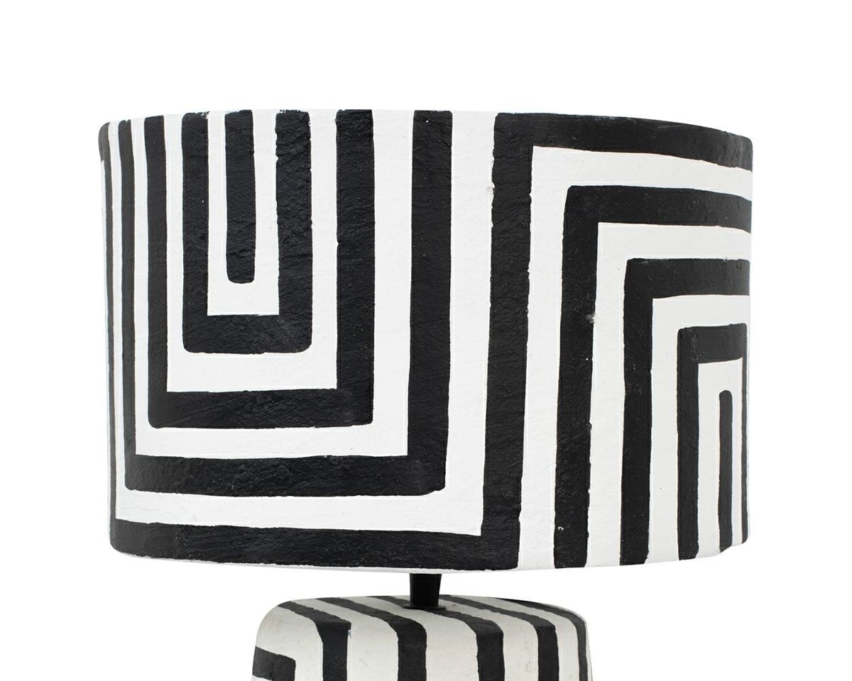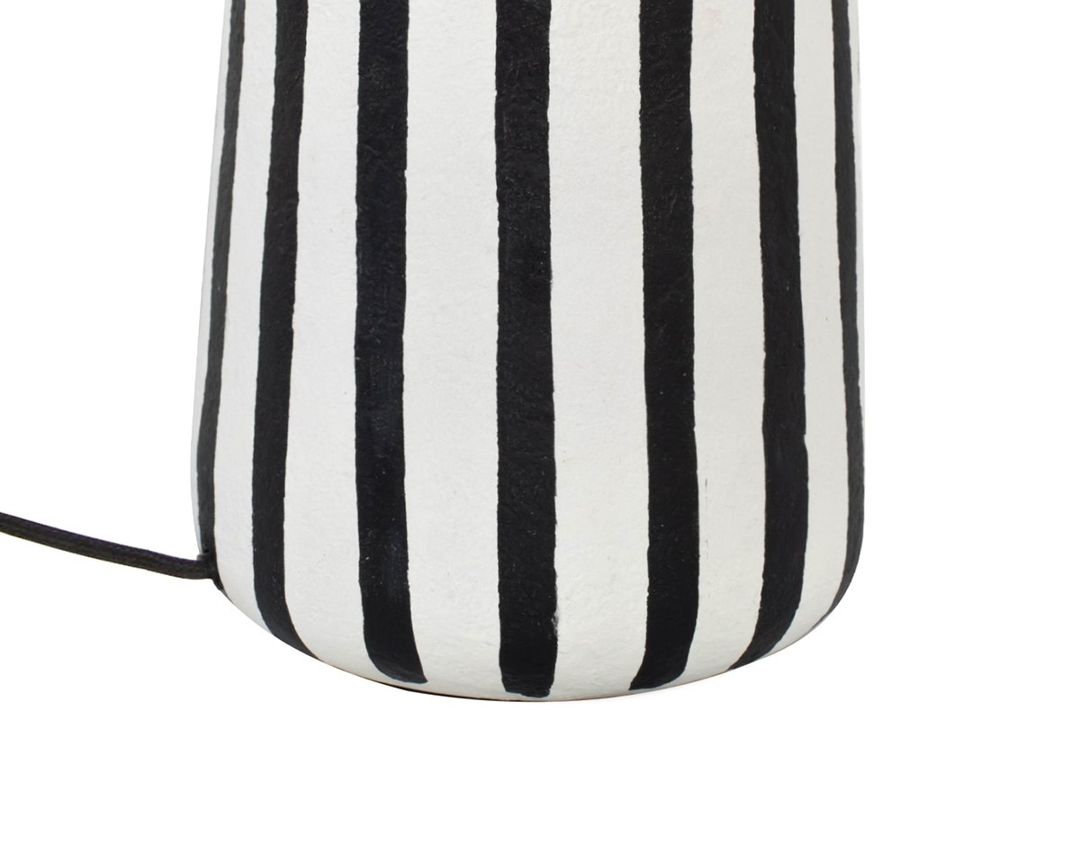 Lampa stołowa Strisce to wyjątkowy element dekoracyjny, który łączy funkcjonalność z artystycznym wyrazem. Wykonana ręcznie z papieru mâché, wyróżnia się oryginalną strukturą i intensywną biało-czarną kolorystyką, wnosząc elegancję i niepowtarzalny styl do każdego wnętrza.