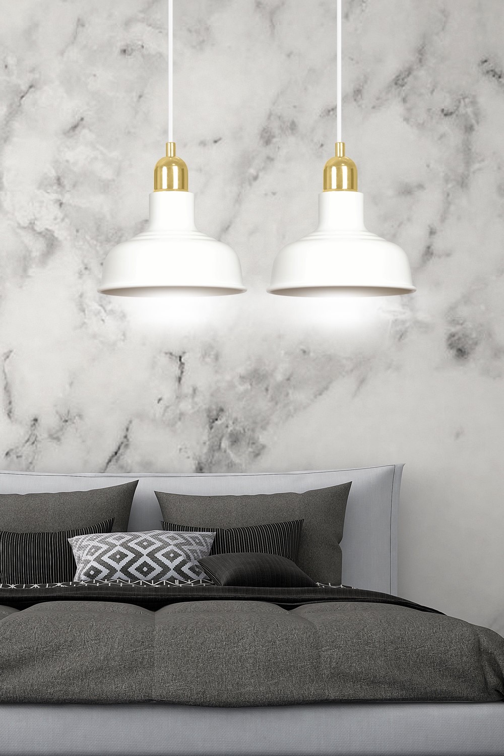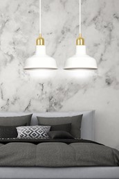 Lampa wisząca IBOR to wyraz nowoczesnej elegancji i prostoty, zaprojektowana z myślą o dopasowaniu do różnorodnych wystrojów wnętrz. Jej minimalistyczna forma oraz stylowy design sprawiają, że doskonale komponuje się z praktycznie każdym stylem aranżacyjnym, nadając mu subtelnego uroku i nowoczesności. Otwarte metalowe klosze lampy IBOR gwarantują równomierne i skuteczne oświetlenie nawet dużych pomieszczeń, tworząc przy tym przyjemną atmosferę w całym wnętrzu. Złote dodatki dodają ekskluzywności i rozświetlają wnętrze, przyciągając uwagę i nadając lampie wyjątkowego charakteru. Lampa wisząca IBOR nie tylko doskonale oświetla pomieszczenie, ale również stanowi wyjątkowy element dekoracyjny, który podkreśla indywidualny charakter każdego wnętrza.