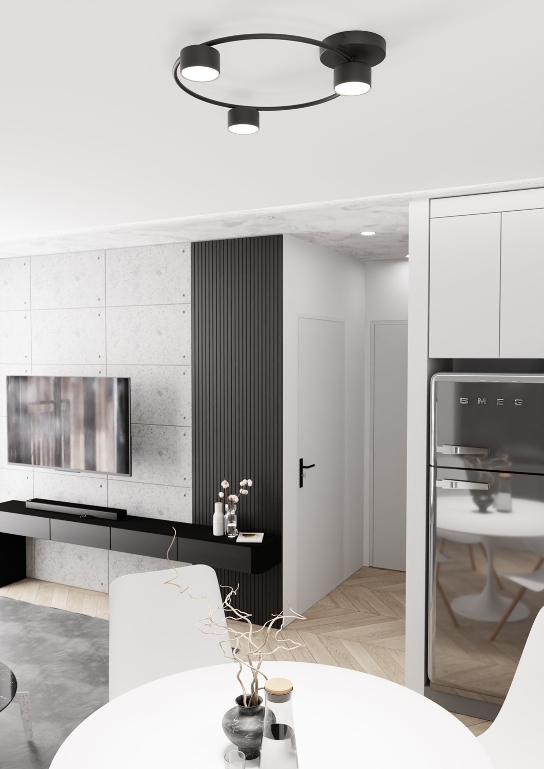 Prezentowana lampa sufitowa to uniwersalne oświetlenie dekoracyjne, która łączy nowoczesny design z wyjątkową funkcjonalnością. Montowana bezpośrednio przy suficie, idealnie sprawdza się w pomieszczeniach o niższym suficie, zapewniając optymalne rozproszenie światła. Jej uniwersalny charakter sprawia, że doskonale pasuje do salonu, sypialni, kuchni, przedpokoju czy biura. To świetny wybór dla osób poszukujących funkcjonalnego, a zarazem estetycznego źródła światła.