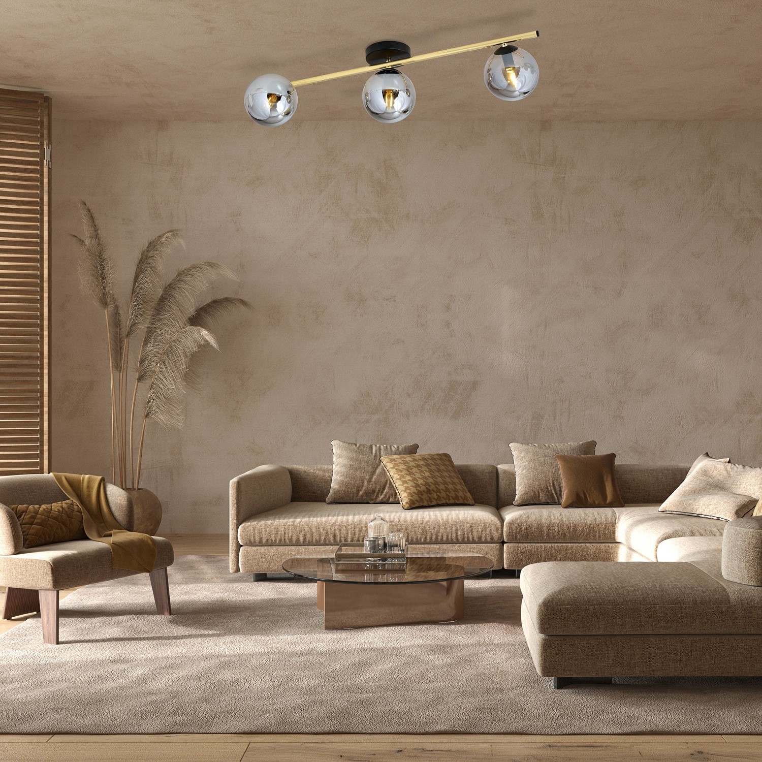 Lampa sufitowa SPLENDI 3 to elegancki wybór dla tych, którzy szukają oświetlenia pasującego do każdego wnętrza. Dzięki swojej konstrukcji idealnie nadaje się do pomieszczeń o niższym suficie, zapewniając jednocześnie odpowiednie oświetlenie. Ozdobne detale w stylu glamour, takie jak złote elementy, dodają lampie wyjątkowego uroku i podkreślają jej elegancję i nowoczesność. Wykonana z najwyższej jakości materiałów, lampa sufitowa SPLENDI 3 gwarantuje trwałość i długowieczność, zapewniając nie tylko piękny wygląd, ale także spokój i pewność, że będzie ona służyć przez wiele lat, dodając blasku i stylu każdemu wnętrzu.