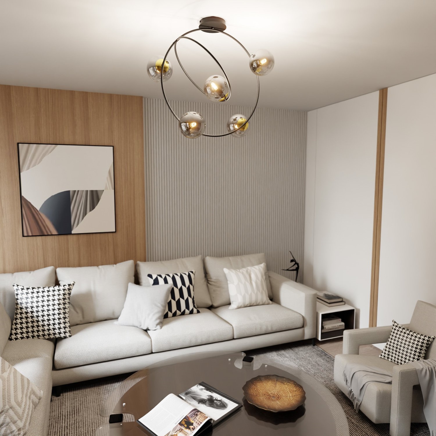 Lampa sufitowa STRADOM 5 to propozycja, która wnosi magię minimalistycznego designu do każdego wnętrza. Wykonana ze stali w czarnym odcieniu, doskonale komponuje się z grafitowym kloszem. Dwa koła, symbolizujące układ planetarny, nadają lampie wyjątkowego charakteru, podkreślając jej nowoczesny i elegancki styl. Jest to doskonały wybór dla osób poszukujących sposobu na ożywienie swoich wnętrz, nie rezygnując przy tym z minimalistycznej estetyki.