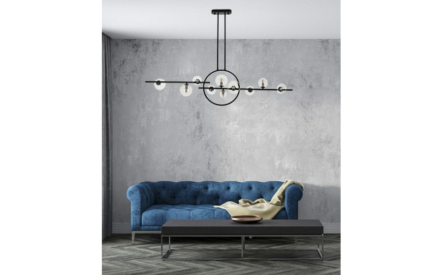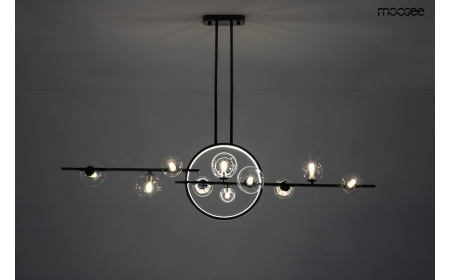Lampa wisząca ALURE LINE TWIN 120 to rewolucyjne rozwiązanie w dziedzinie oświetlenia, łączące nowoczesny design z funkcjonalnością. Ta innowacyjna lampa zachwyca połączeniem tradycyjnych kloszy z nowoczesną, świecącą obręczą LED, tworząc efektowną i praktyczną formę oświetleniową. Konstrukcja lampy została wykonana z wysokiej jakości metalu, a elegancki czarny kolor nadaje jej nowoczesnego charakteru. ALURE LINE TWIN 120 to model, który doskonale sprawdzi się zarówno w designerskich wnętrzach użyteczności publicznej, jak restauracje czy kawiarnie, jak i w domowym zaciszu, dodając mu nowoczesnego i stylowego akcentu. Świetlisty pierścień LED, otaczający standardowe klosze, nie tylko nadaje lampie unikalny wygląd, ale także zapewnia funkcjonalne oświetlenie.