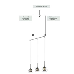 Lampa wisząca Aston 3L to efektowna oprawa świetlna, która stanie się centralnym punktem aranżacji salonu, jadalni lub sypialni. Trzy źródła światła, osadzone w metalicznych, smukłych kloszach, zapewniają równomierne rozproszenie światła i elegancki wygląd. Dzięki regulowanej długości przewodów lampę można dopasować do wysokości pomieszczenia lub charakteru przestrzeni. Idealna do wnętrz inspirowanych luksusem i wyrafinowaniem. Doskonale prezentuje się zarówno pojedynczo, jak i w towarzystwie innych lamp z serii ASTON.