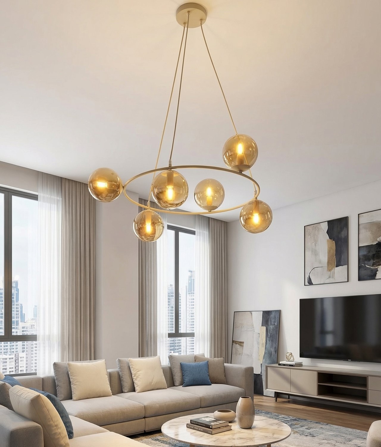 Prezentowana lampa wisząca to elegancki i funkcjonalny element oświetlenia, który doskonale sprawdzi się w różnych wnętrzach. Dzięki swojemu designowi pasuje zarówno do nowoczesnych, jak i klasycznych aranżacji. Może pełnić rolę głównego źródła światła w salonie, jadalni, kuchni czy sypialni. Zawieszona nad stołem lub wyspą kuchenną tworzy przytulną atmosferę i podkreśla charakter przestrzeni. Lampa pełni nie tylko funkcję praktyczną, ale również dekoracyjną. To doskonały wybór dla osób ceniących nowoczesny design i wyraziste akcenty we wnętrzu.