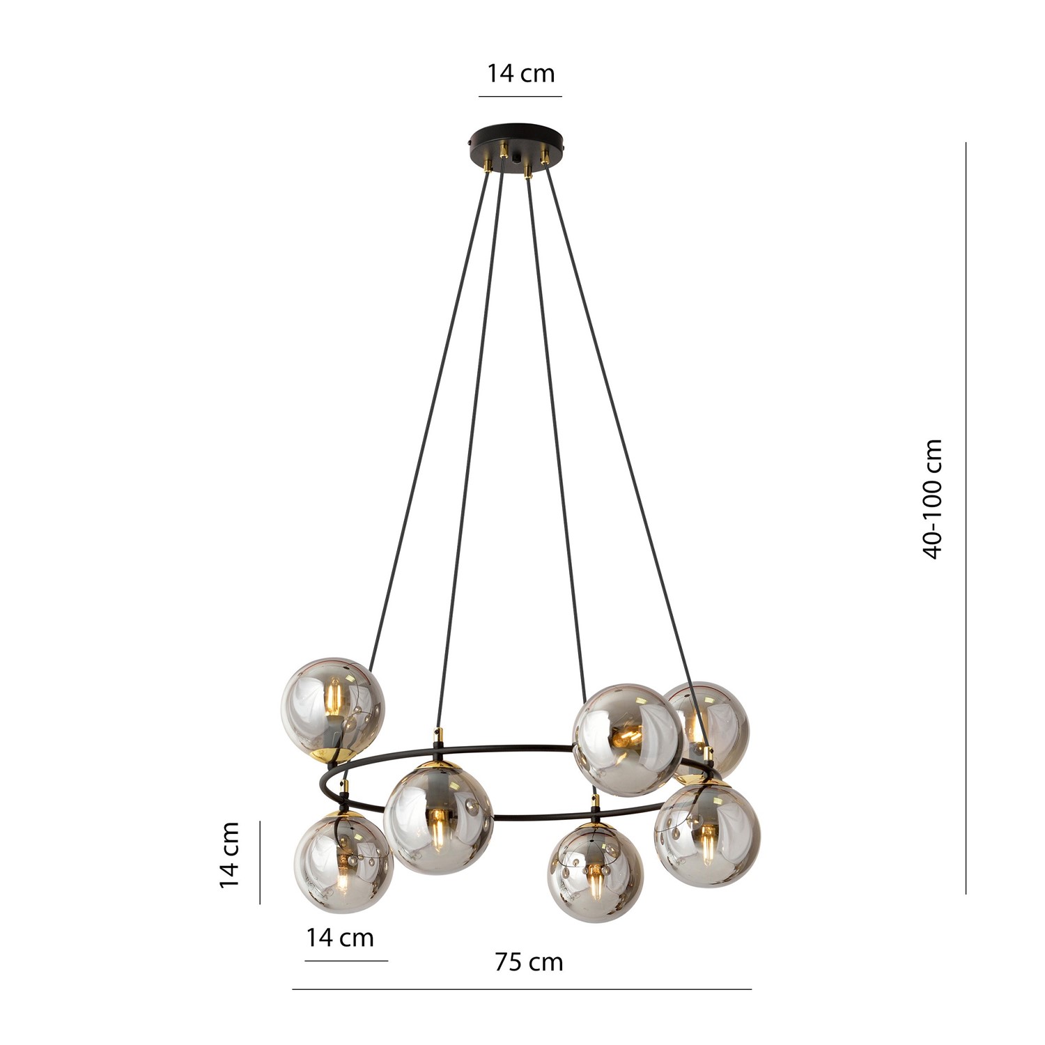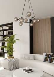 Lampa wisząca AZURA 8 to propozycja wprowadzająca elegancję minimalistycznego designu do każdego wnętrza. Została wykonana ze stali w kolorze czarnym, doskonale komponując się z grafitowym kloszem. Jej kształt w formie okręgu z nieregularnie rozmieszczonymi kloszami nadaje wnętrzu wyjątkową atmosferę, podkreślając jednocześnie jego nowoczesny i wytworny charakter. Jest to doskonały wybór dla osób poszukujących sposobu na dodanie oryginalności swojemu wnętrzu, tworząc oświetlenie, które nie tylko spełnia funkcjonalne potrzeby, ale także wyróżnia się estetyką.
