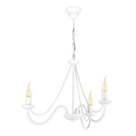 Prezentowany żyrandol o formie świecznika stylowo łączy klasykę z nowoczesnością. Zawieszony na regulowanym łańcuszku, pozwala dopasować wysokość do wnętrza i własnych potrzeb. Ramiona zwieńczone źródłami światła przypominają świeczki, zwłaszcza przy zastosowaniu żarówek w kształcie płomieni lub stożków. Konstrukcja lampy została wykonana z wysokiej jakości metalu, co zapewnia trwałość i stabilność. Matowa, biała kolorystyka nadaje jej nowoczesnego wyrazu i podkreśla surowy, industrialny charakter. Dzięki uniwersalnemu wyglądowi z łatwością wkomponuje się w różne aranżacje.