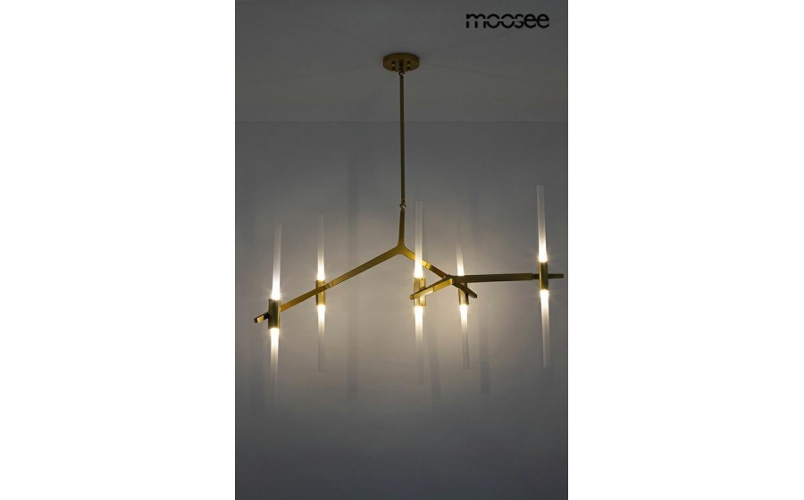 Lampa wisząca CANDELABR to niezwykła propozycja oświetlenia, które wyróżnia się nowoczesnym designem. Jej unikalny kształt i nietypowe rozplanowanie sprawiają, że stanowi niebanalny dodatek do każdego wnętrza. Oprawa lampy została umieszczona w asymetryczny sposób, co dodaje jej charakteru. Możliwość regulacji kloszy, jak i ramion, pozwala dostosować oświetlenie do indywidualnych preferencji i potrzeb. Wykonana z metalu konstrukcja gwarantuje solidność i trwałość. Lampa jest wyposażona w dziesięć szklanych, podłużnych kloszy, które nie tylko pełnią funkcję osłony, ale także nadają oświetleniu subtelny i elegancki charakter.