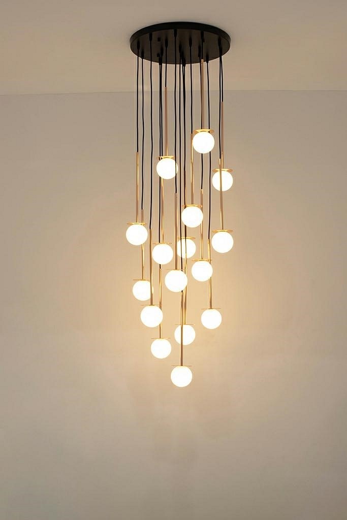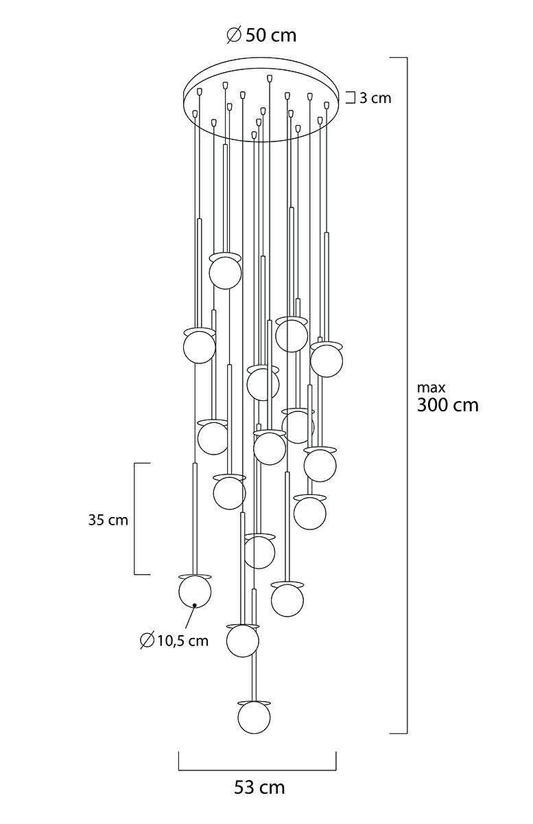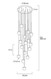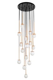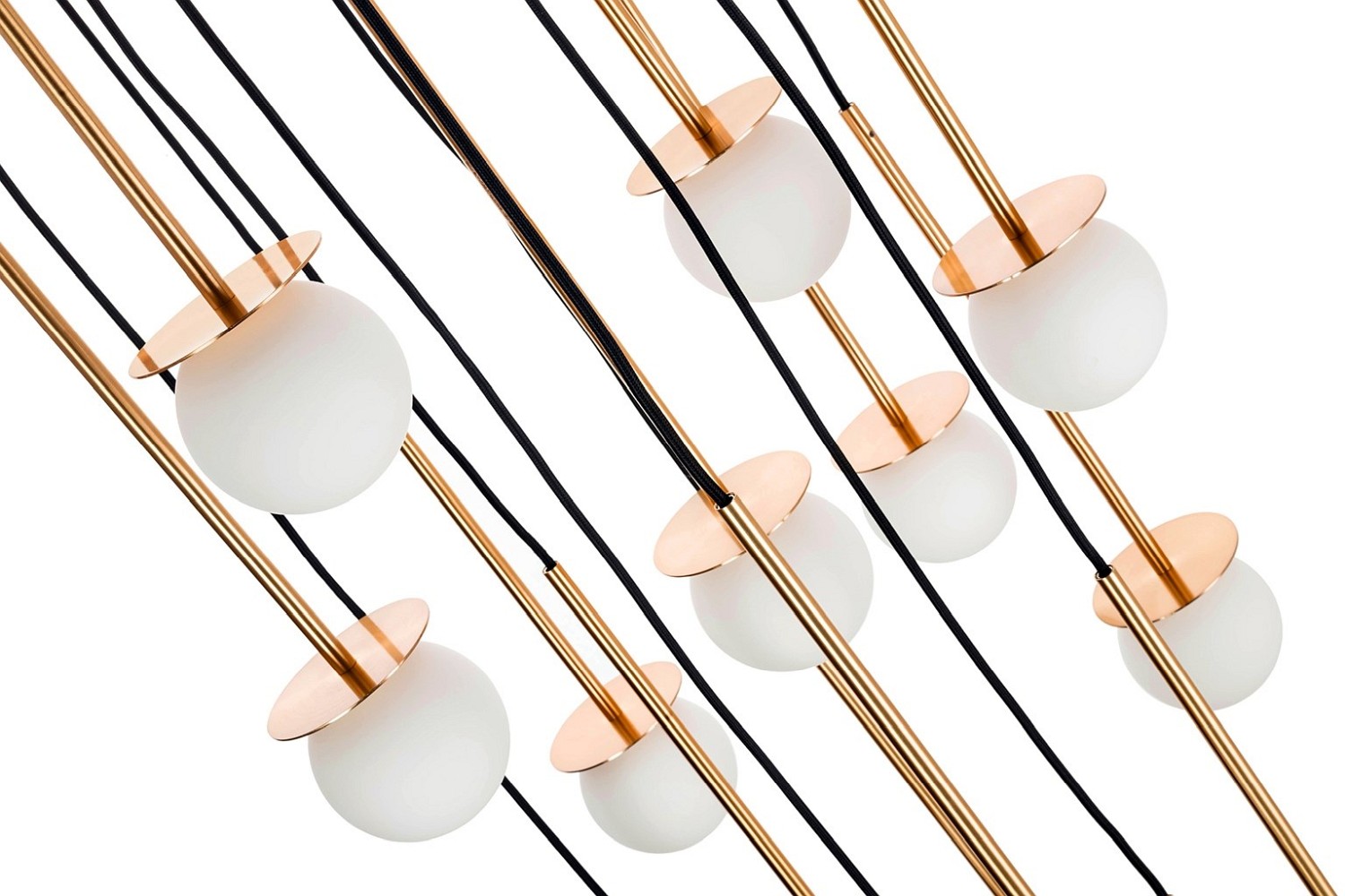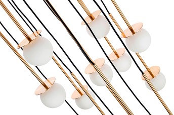 Wykonana została z połączenia stali w miedzianym kolorze i kulistych matowych kloszy o średnicy 10 cm,