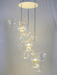 Lampa Capri Disc 3 składa się z kulistych, szklanych kloszy oraz metalu. Trzy główne kule zawieszone są na przewodach, wychodzących z jednej podsufitki. Wewnątrz każdej z kul jest złoty, szczotkowany pręt zakończony źródłem światła LED. Do głównych kloszy doczepione są pozostałe kule za pomocą mocowań w kolorze złotym. Całość przypomina połączone bańki mydlane. Snop światła skierowany jest zarówno do dołu oraz do góry. Dzięki temu tworzy to bardzo przyjemny i elegancki efekt. Źródło światła (wbudowane): moduł LED 3 x 5W. Średnica klosza: 3 x 30 cm, 3 x 18 cm, 3 x 14 cm.