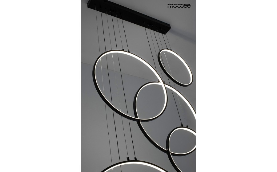 Lampa wisząca CIRCULO SIX to znakomite połączenie prostoty, funkcjonalności i elegancji. Wykonana z wysokiej jakości metalu i aluminium, ta nowoczesna lampa wprowadzi harmonię światła do każdego pomieszczenia. CIRCULO to seria składająca się z sześciu lamp o różnych średnicach, harmonijnie zawieszonych kaskadowo na jednej podsufitce. To nie tylko oświetlenie, lecz prawdziwa rzeźba światła, która nadaje wnętrzu niepowtarzalny charakter. Konstrukcja lampy została starannie zaprojektowana, aby zapewnić równowagę i estetykę w każdym detalu. Czarna kolorystyka lampy CIRCULO SIX sprawia, że pasuje zarówno do klasycznych, jak i nowoczesnych wnętrz. Uniwersalność tego oświetlenia pozwala mu doskonale wpasować się w różnorodne style aranżacyjne.