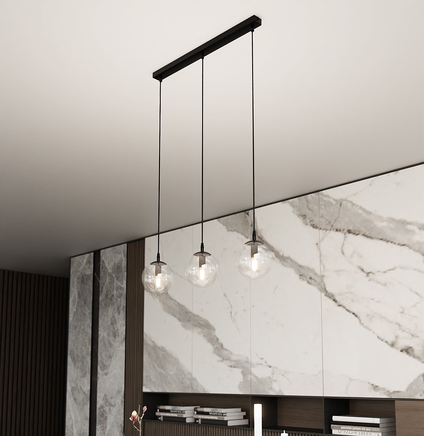 Lampa wisząca COSMO to element uniwersalny i ponadczasowy, który doskonale pasuje do różnorodnych wnętrz. Jej minimalistyczny styl harmonizuje z najnowszymi trendami, jednocześnie zachowując elegancję, która nigdy nie wychodzi z mody. Najmodniejsze szklane klosze lampy COSMO zapewniają doskonałe doświetlenie pomieszczenia, tworząc przyjemną atmosferę i nadając mu charakteru. Dzięki wysokim standardom produkcji, lampa wisząca COSMO nie tylko świetnie prezentuje się w każdym pomieszczeniu, ale również zapewnia trwałość i zadowolenie z użytkowania.