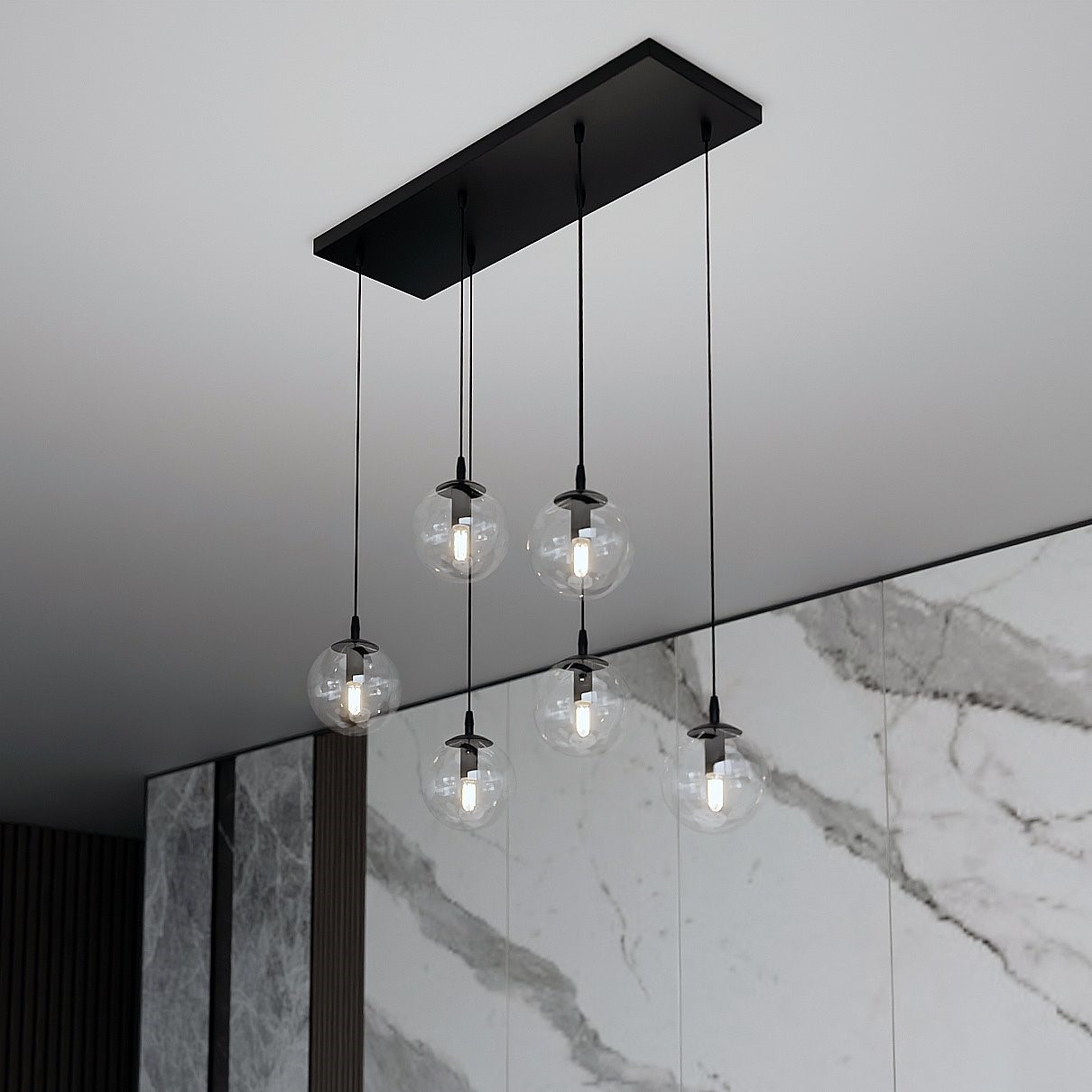 Lampa wisząca COSMO to element uniwersalny i ponadczasowy, który doskonale pasuje do różnorodnych wnętrz. Jej minimalistyczny styl harmonizuje z najnowszymi trendami, jednocześnie zachowując elegancję, która nigdy nie wychodzi z mody. Najmodniejsze szklane klosze lampy COSMO zapewniają doskonałe doświetlenie pomieszczenia, tworząc przyjemną atmosferę i nadając mu charakteru. Dzięki wysokim standardom produkcji, lampa wisząca COSMO nie tylko świetnie prezentuje się w każdym pomieszczeniu, ale również zapewnia trwałość i zadowolenie z użytkowania.