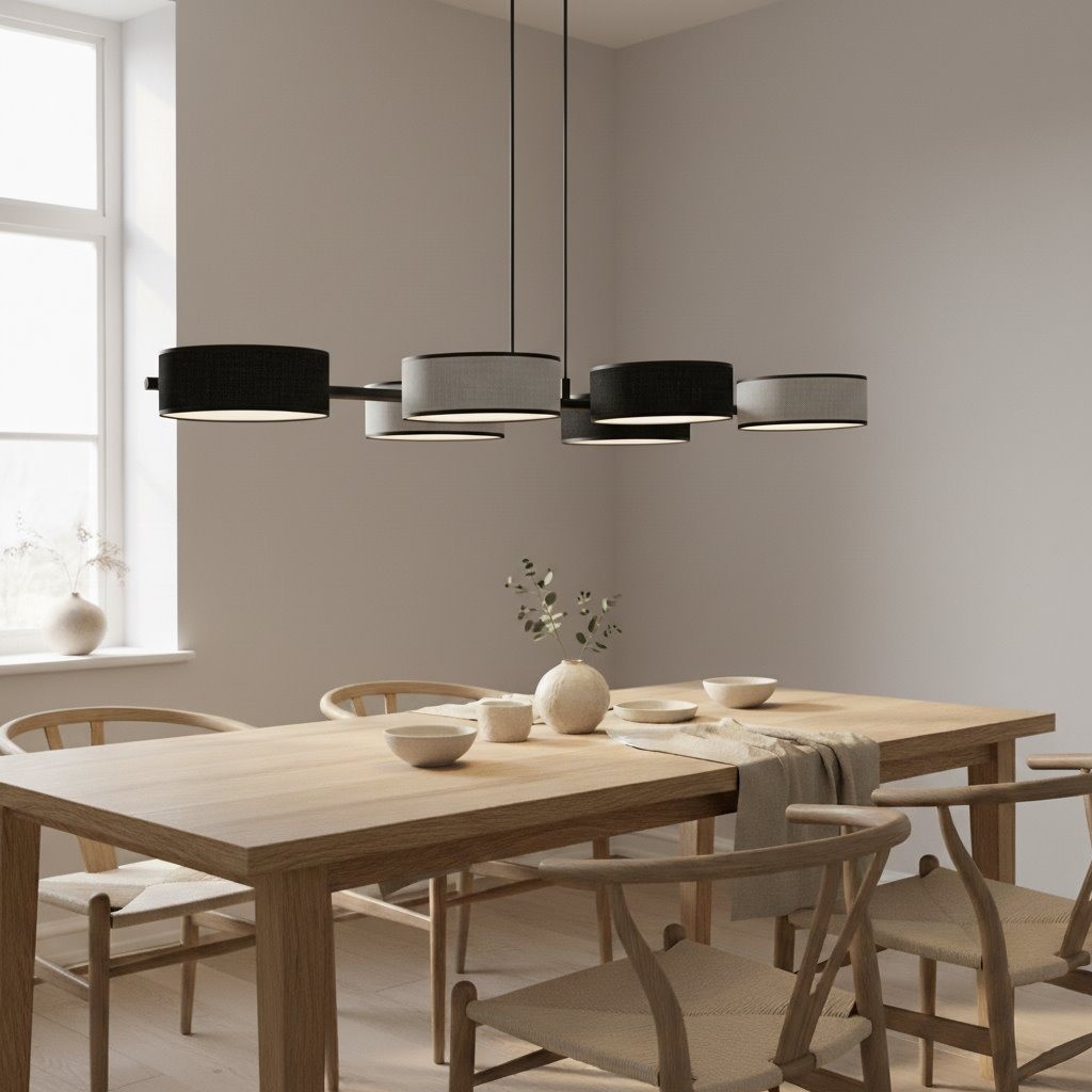 Prezentowana lampa wisząca to elegancki i funkcjonalny element oświetlenia, który doskonale sprawdzi się w różnych wnętrzach. Dzięki swojemu designowi pasuje zarówno do nowoczesnych, jak i klasycznych aranżacji. Może pełnić rolę głównego źródła światła w salonie, jadalni, kuchni czy sypialni. Zawieszona nad stołem lub wyspą kuchenną tworzy przytulną atmosferę i podkreśla charakter przestrzeni. Wysokość zawieszenia często można regulować, co pozwala dopasować ją do indywidualnych potrzeb i wysokości pomieszczenia.