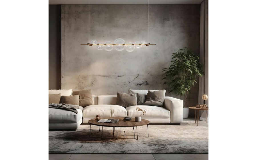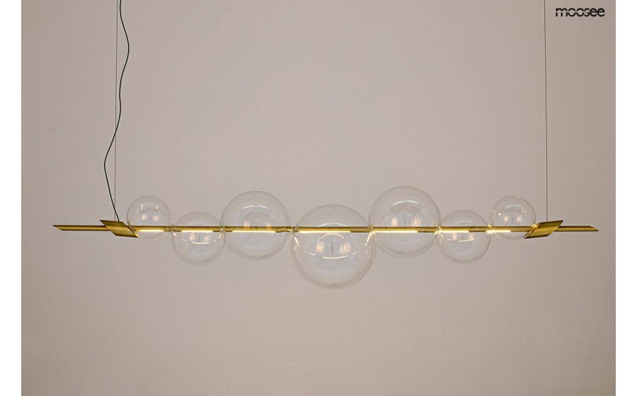 Lampa wisząca ECHO 140 to wyjątkowy element, który doda elegancji i uroku każdej przestrzeni. Ta ponadczasowa, designerska oprawa została wykonana z połączenia wysokiej jakości metalu i przezroczystego szkła. Lampa składa się z okrągłych kloszy o różnych rozmiarach, które zostały umiejętnie zamocowane na metalowej konstrukcji. Złociste wykończenie dodaje lampie luksusowego charakteru, podkreślając jednocześnie detale i nowoczesny design. Delikatne światło, które emanuje z lampy, tworzy przyjemną atmosferę, podkreślając subtelność i finezję każdego pomieszczenia. Lampa ECHO doskonale sprawdzi się zarówno we wnętrzach nowoczesnych, podkreślając ich minimalistyczny charakter, jak i w klasycznych aranżacjach, dodając im nowoczesnego akcentu.