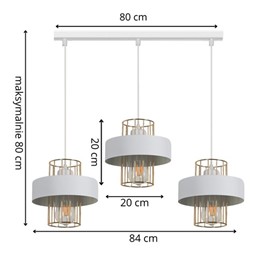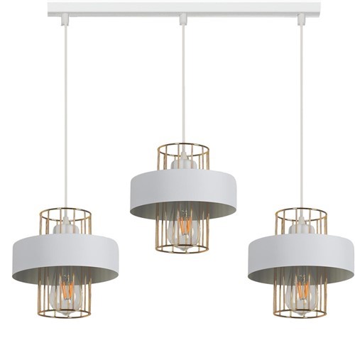 Lampa wisząca Estella to oświetlenie o nowoczesnym designie, w którym oryginalne formy są cenione. Trzy proste, minimalistyczne, a jednocześnie zachwycające metalowe klosze w kolorze białym, zamocowane na białej listwie i połączone ze złotymi metalowymi elementami, sprawią, że pomieszczenie zyska unikalny i oryginalny wystrój. Emitowane z lampy światło stworzy komfortową atmosferę w wybranej przestrzeni. Oprawa świetnie wpisuje się w nowoczesne, minimalistyczne oraz loftowe wnętrza, stanowiąc doskonałą propozycję oświetlenia centralnego w salonie, jadalni, kuchni, sypialni, garderobie czy biurze.