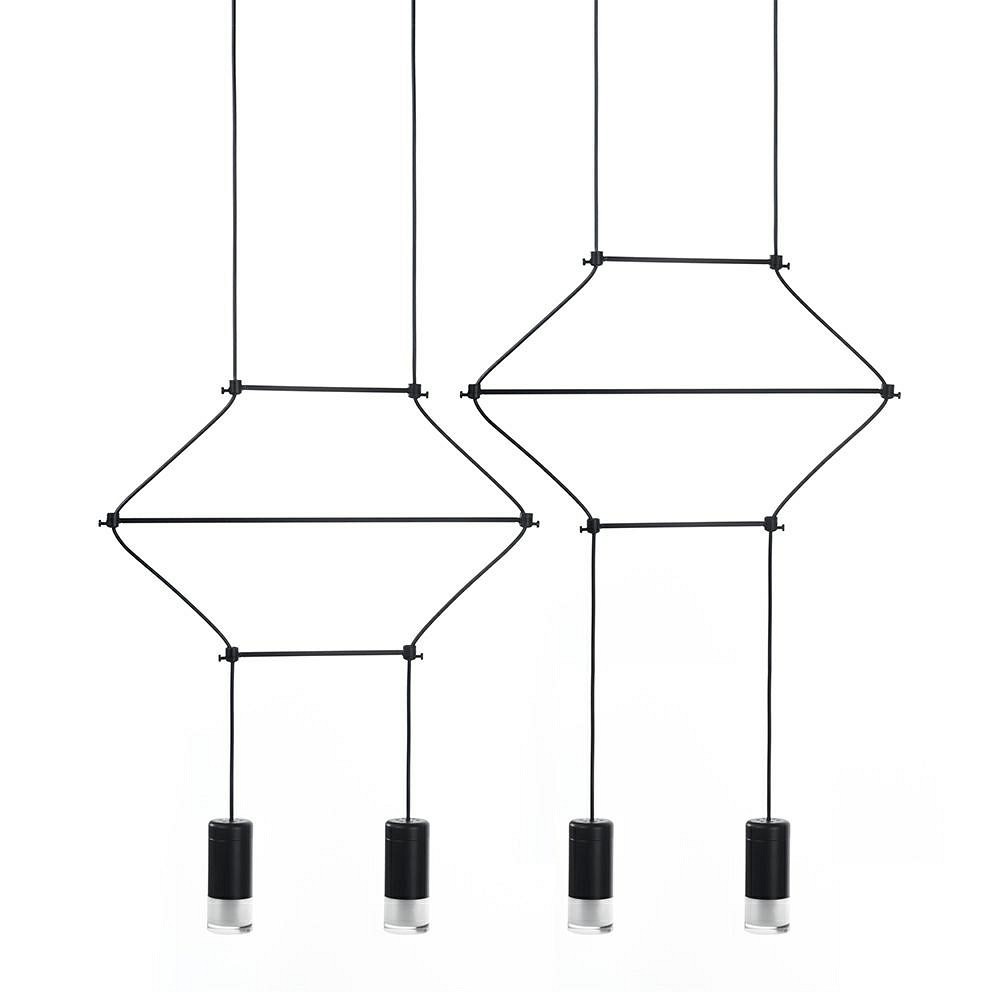 Lampa wisząca Flusso Line 4. Minimalistyczna i zaskakująca konstrukcja. Lampa wykonana została z czterech jednakowych przewodów. Kształt lampie nadają metalowe elementy, które wraz z przewodami tworzą geometryczną konstrukcję w czarnym kolorze. Elementy pozwalają na połączenie dwóch przewodów, tworząc dwie oddzielne konstrukcje. Pozwala to na dowolną aranżację lampy. Przewody zakończone są czterema satynowymi kloszami. Wewnątrz kloszy umieszczono Ledowe źródła światła. Całość tworzy wyjątkowo ciekawą lampę do niebanalnych wnętrz. Lampy z kolekcji Flusso dostępne są w wielu wariantach. Źródło światła: G9 LED 4 x 3W Maksymalna ilość szt. w opakowaniu: 1 Waga netto: 6 kg Waga z opakowaniem: 7 kg Wymiary paczki: 62 cm x 15 cm x 15 cm Sposób wysyłki: Paczka Produkt do samodzielnego montażu: Tak