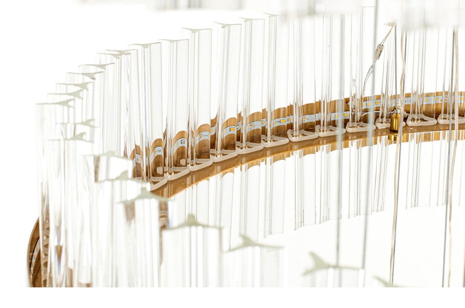 - Efekt kaskadowy: Ringi o różnych rozmiarach, zawieszone na cienkich linkach, tworzą efekt kaskady, który dodaje dynamiki i nowoczesnego stylu do każdego pomieszczenia.