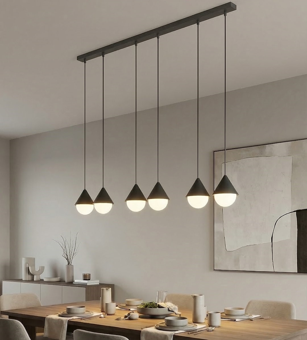 Prezentowana lampa wisząca to elegancki i funkcjonalny element oświetlenia, który doskonale sprawdzi się w różnych wnętrzach. Dzięki swojemu designowi pasuje zarówno do nowoczesnych, jak i klasycznych aranżacji. Może pełnić rolę głównego źródła światła w salonie, jadalni, kuchni czy sypialni. Zawieszona nad stołem lub wyspą kuchenną tworzy przytulną atmosferę i podkreśla charakter przestrzeni. Lampa pełni nie tylko funkcję praktyczną, ale również dekoracyjną. To doskonały wybór dla osób ceniących nowoczesny design i wyraziste akcenty we wnętrzu.