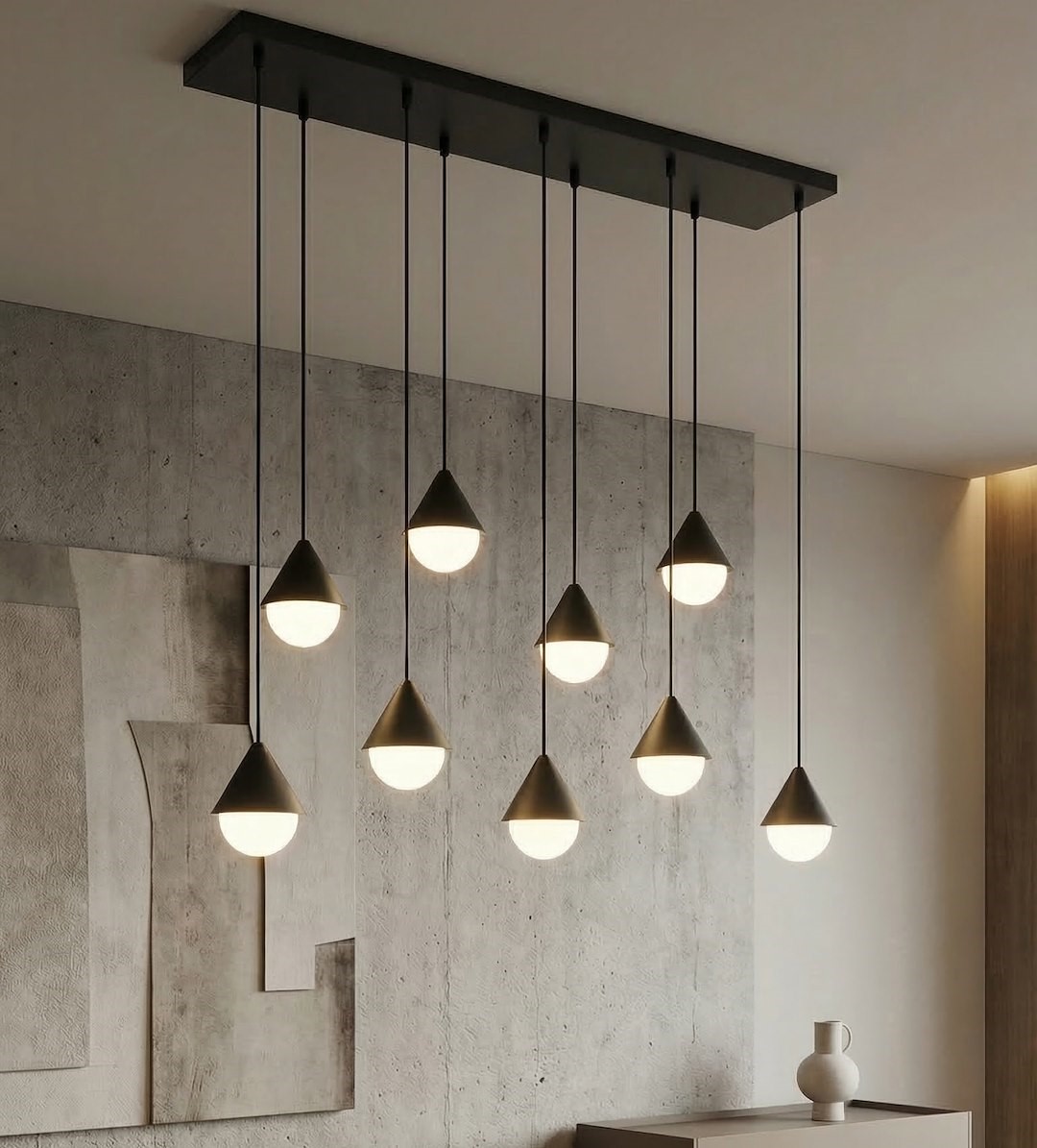 Prezentowana lampa wisząca to elegancki i funkcjonalny element oświetlenia, który doskonale sprawdzi się w różnych wnętrzach. Dzięki swojemu designowi pasuje zarówno do nowoczesnych, jak i klasycznych aranżacji. Może pełnić rolę głównego źródła światła w salonie, jadalni, kuchni czy sypialni. Zawieszona nad stołem lub wyspą kuchenną tworzy przytulną atmosferę i podkreśla charakter przestrzeni. Lampa pełni nie tylko funkcję praktyczną, ale również dekoracyjną. To doskonały wybór dla osób ceniących nowoczesny design i wyraziste akcenty we wnętrzu.