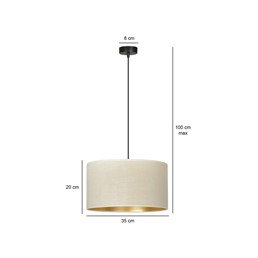 Lampa wisząca HILDE to wyjątkowy dodatek do każdego wnętrza, łączący w sobie nowoczesność i klasyczną elegancję. Ta lampa abażurowa zapewnia nie tylko funkcjonalne oświetlenie, ale również dodaje wyrafinowanego uroku przestrzeni. Regulacja długości przewodów umożliwia dostosowanie lampy do indywidualnych potrzeb i wymiarów pomieszczenia, zapewniając elastyczność w aranżacji. Jej abażury wykonane z trwałego materiału o welurowej fakturze ze złotym środkiem dodają wnętrzu subtelnego luksusu i elegancji. Prosta konstrukcja lampy HILDE oraz jej elegancka kolorystyka sprawiają, że jest to nie tylko źródło światła, ale również wyjątkowy element dekoracyjny, który przyciąga wzrok i podkreśla charakter każdego pomieszczenia.