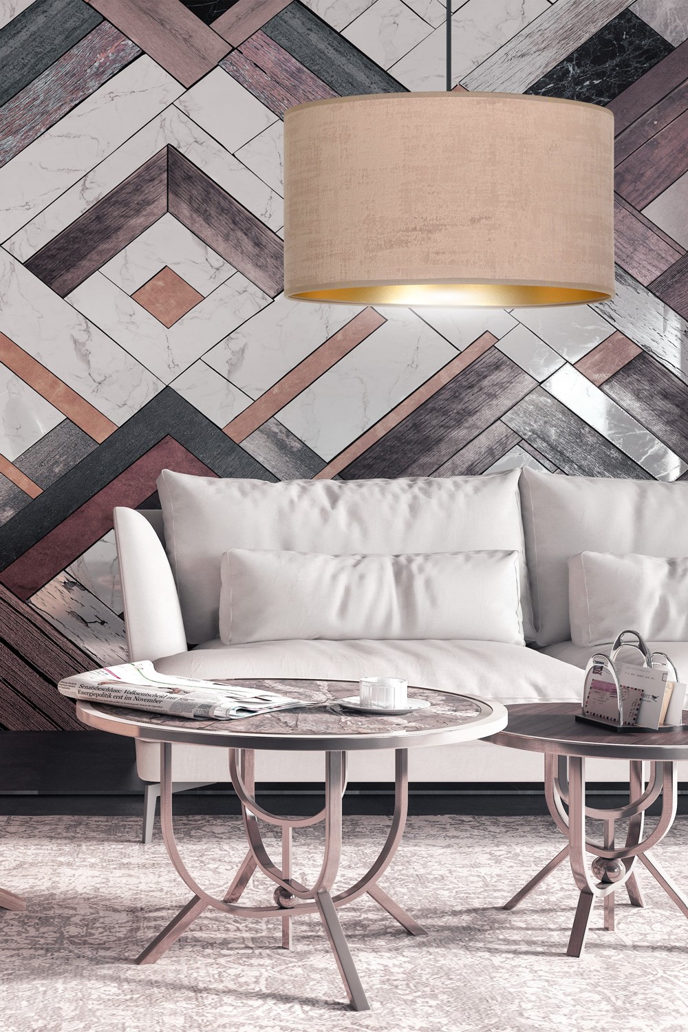 Lampa wisząca HILDE to wyjątkowy dodatek do każdego wnętrza, łączący w sobie nowoczesność i klasyczną elegancję. Ta lampa abażurowa zapewnia nie tylko funkcjonalne oświetlenie, ale również dodaje wyrafinowanego uroku przestrzeni. Regulacja długości przewodów umożliwia dostosowanie lampy do indywidualnych potrzeb i wymiarów pomieszczenia, zapewniając elastyczność w aranżacji. Jej abażury wykonane z trwałego materiału o welurowej fakturze ze złotym środkiem dodają wnętrzu subtelnego luksusu i elegancji. Prosta konstrukcja lampy HILDE oraz jej elegancka kolorystyka sprawiają, że jest to nie tylko źródło światła, ale również wyjątkowy element dekoracyjny, który przyciąga wzrok i podkreśla charakter każdego pomieszczenia.