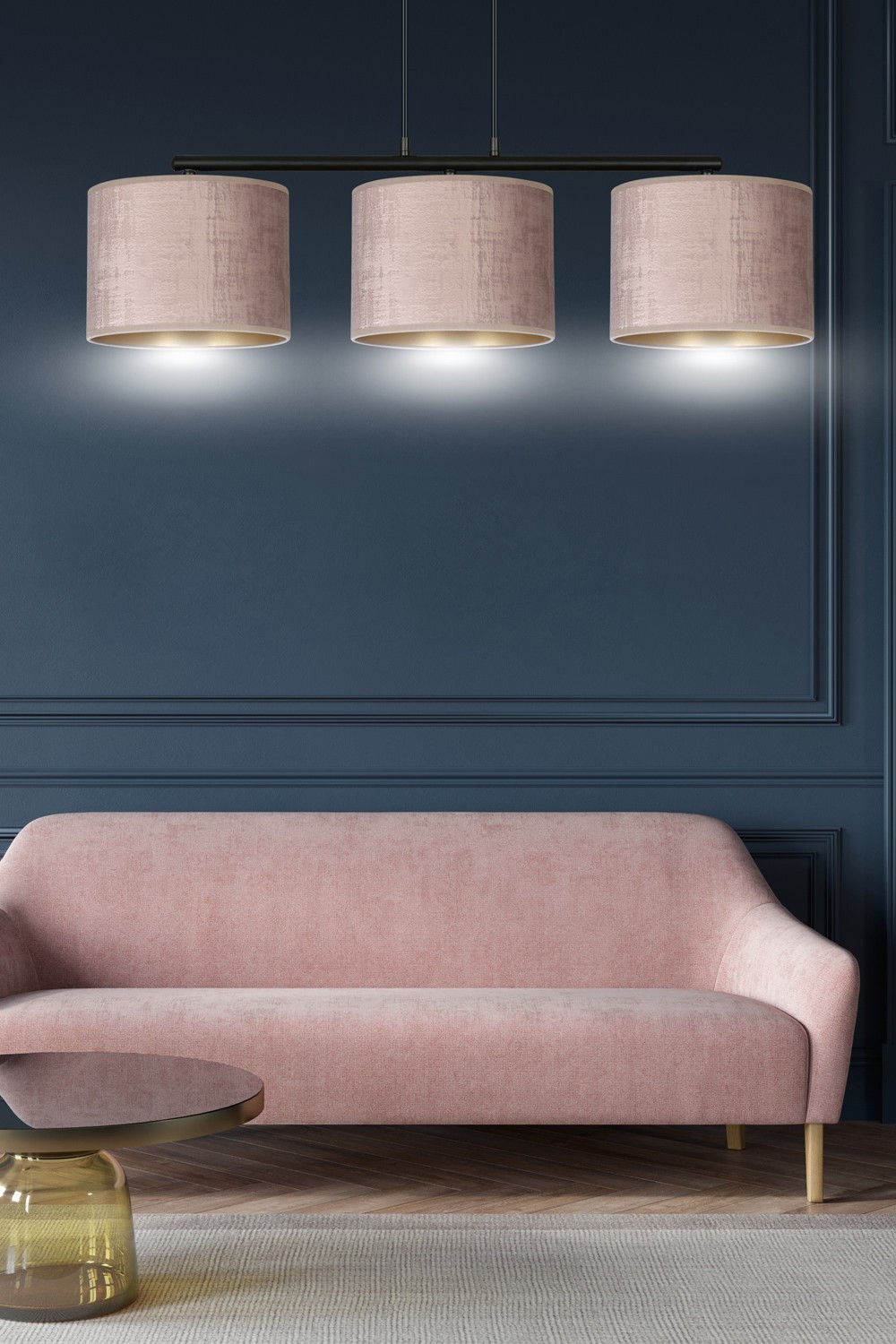 Lampa wisząca HILDE to wyjątkowy dodatek do każdego wnętrza, łączący w sobie nowoczesność i klasyczną elegancję. Ta lampa abażurowa zapewnia nie tylko funkcjonalne oświetlenie, ale również dodaje wyrafinowanego uroku przestrzeni. Regulacja długości przewodów umożliwia dostosowanie lampy do indywidualnych potrzeb i wymiarów pomieszczenia, zapewniając elastyczność w aranżacji. Jej abażury wykonane z trwałego materiału o welurowej fakturze ze złotym środkiem dodają wnętrzu subtelnego luksusu i elegancji. Prosta konstrukcja lampy HILDE oraz jej elegancka kolorystyka sprawiają, że jest to nie tylko źródło światła, ale również wyjątkowy element dekoracyjny, który przyciąga wzrok i podkreśla charakter każdego pomieszczenia.