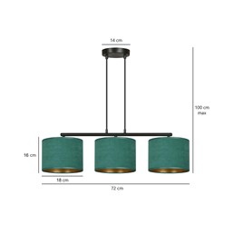 Lampa wisząca HILDE to wyjątkowy dodatek do każdego wnętrza, łączący w sobie nowoczesność i klasyczną elegancję. Ta lampa abażurowa zapewnia nie tylko funkcjonalne oświetlenie, ale również dodaje wyrafinowanego uroku przestrzeni. Regulacja długości przewodów umożliwia dostosowanie lampy do indywidualnych potrzeb i wymiarów pomieszczenia, zapewniając elastyczność w aranżacji. Jej abażury wykonane z trwałego materiału o welurowej fakturze ze złotym środkiem dodają wnętrzu subtelnego luksusu i elegancji. Prosta konstrukcja lampy HILDE oraz jej elegancka kolorystyka sprawiają, że jest to nie tylko źródło światła, ale również wyjątkowy element dekoracyjny, który przyciąga wzrok i podkreśla charakter każdego pomieszczenia.